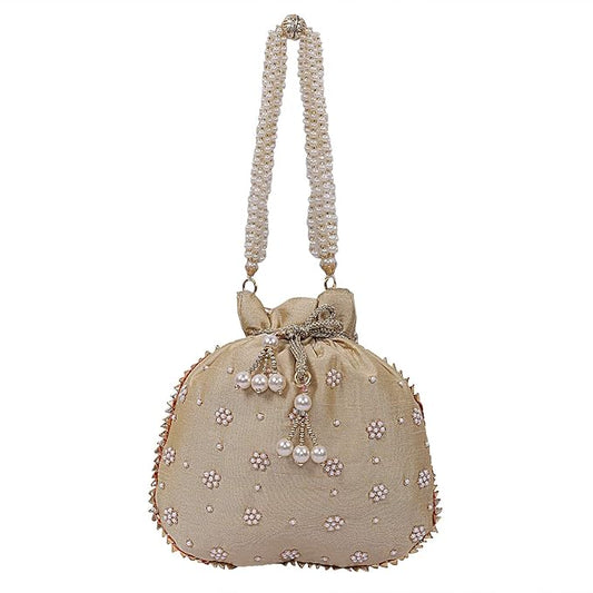 Women Potli Bag (Gold) -CTKTC07258 Silk 1 Piece
