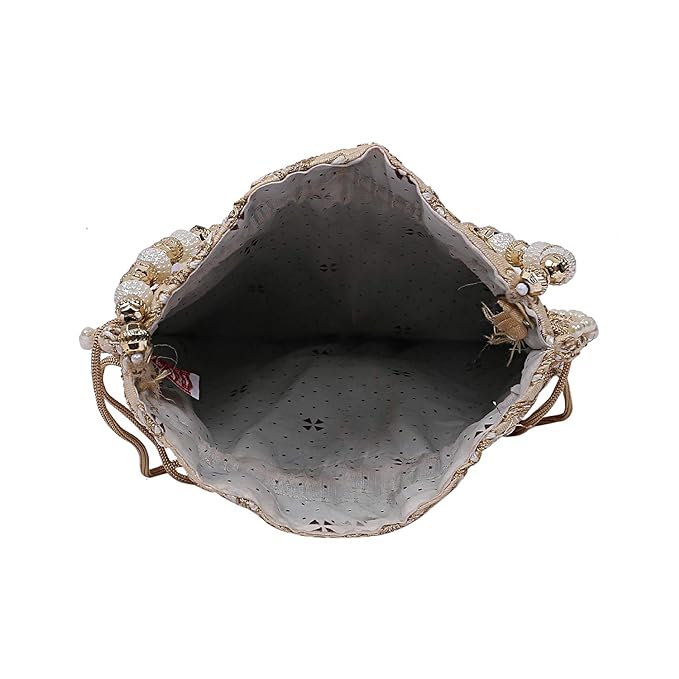Silk Embroidered Women Potli Bag (Cream)