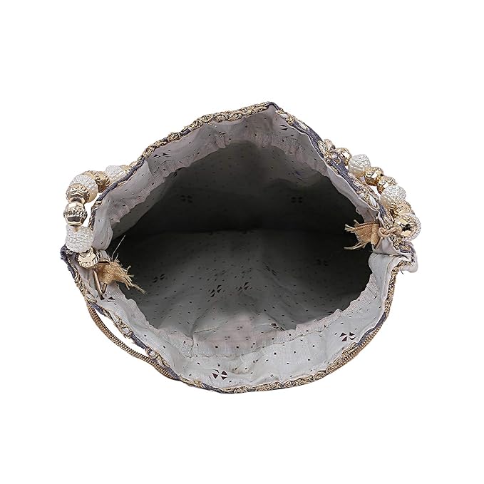 Potli bag is made of high quality silk material with a unique and attractive embroidery art work. This potli is good match with both Indian and western outfits and are superb for wedding and festive parties. This would be best complement to your designer saree, lenhga or any other kind of dress. This is the combination of traditional and modern embroidery work and this potli bag makes you glamorous and unique among your friends. This is enough to keep your accessories and all needed essentials and it can be a best gift for any woman.